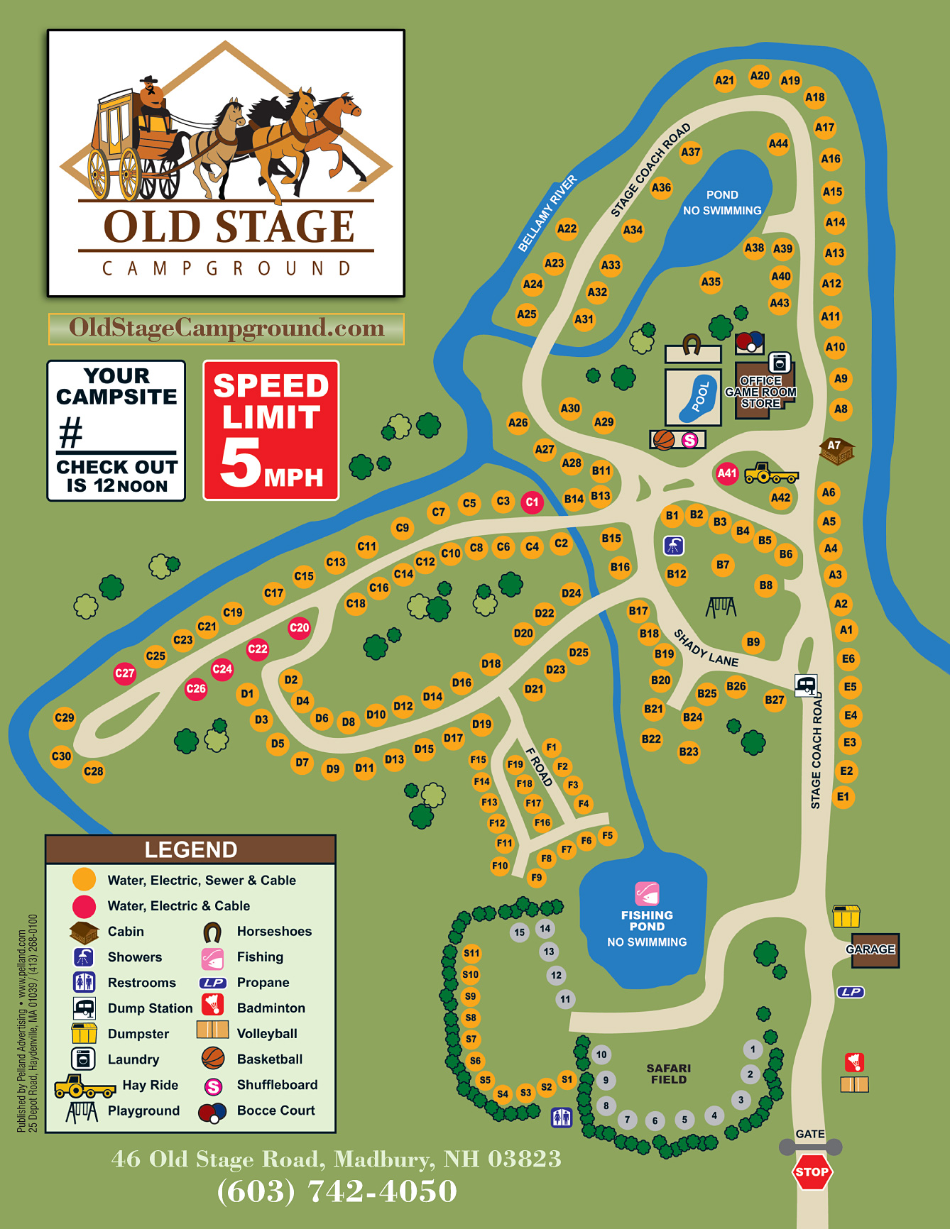 The office at Old Stage is located in proximity to our many conveniences and amenities, including our store and game room (part of the office), restrooms, swimming pool, playground, and more. Click on the map, below, to download and view a larger PDF version. To help make everyone’s stay safe and enjoyable, please observe the following camping guidelines.